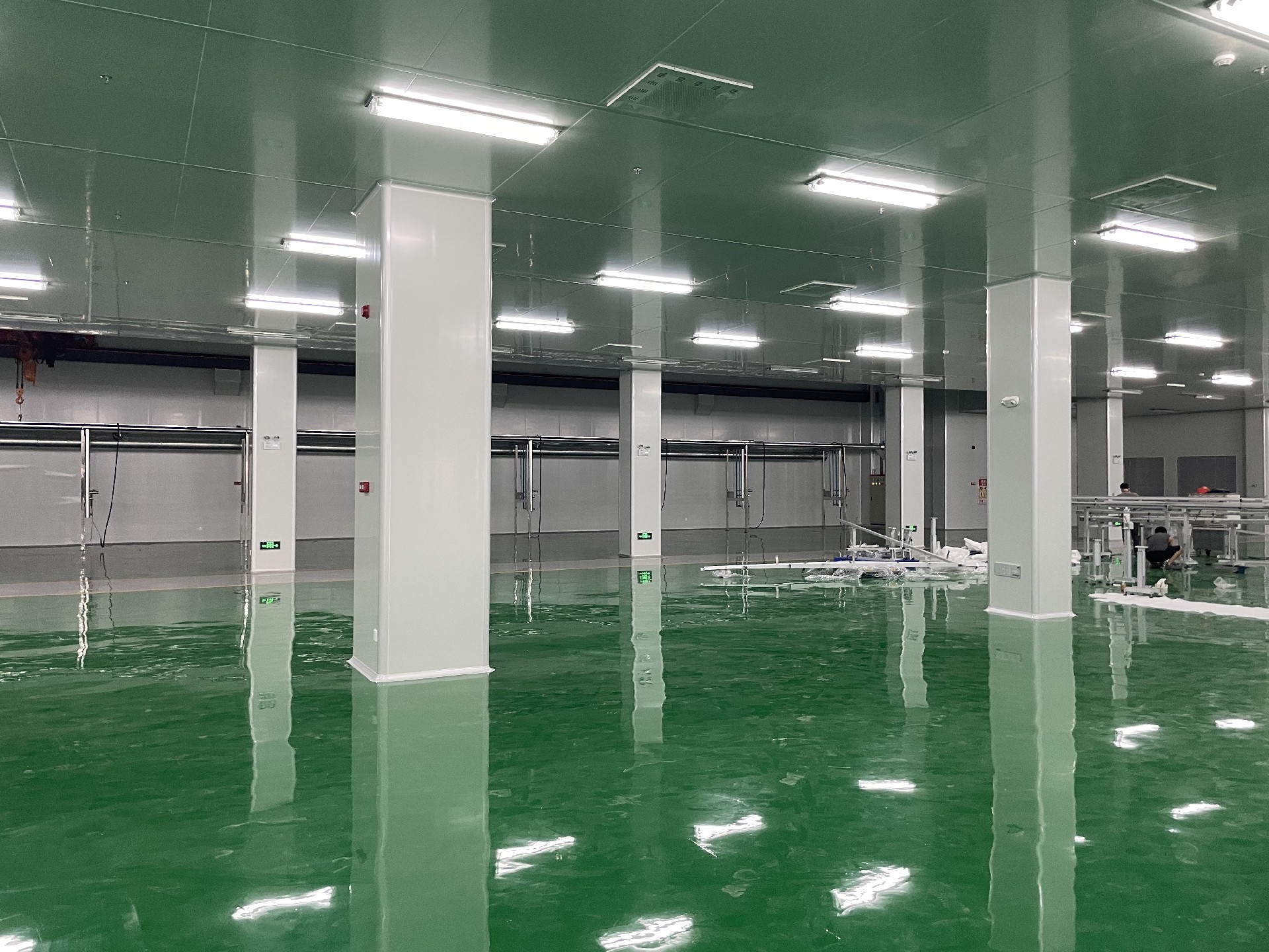 潔凈廠房裝修施工的注意事項如下: ### 施工前準備 - **資質與方案審核**:施工企業(yè)應具備相應工程施工資質及其等級,擁有完善的質量管理體系。要根據(jù)具體工程項目的特點,制訂詳細的施工方案和程序,明確各工種施工順序、質量控制要點和安全措施。 - **人員與材料管理**:對施工人員進行專業(yè)培訓和安全教育,特殊工種須持證上崗。對進場材料進行嚴格檢驗和驗收,檢查質量證明文件、規(guī)格型號、外觀質量等,按規(guī)定進行抽樣檢測,不合格材料嚴禁使用。 - **施工環(huán)境控制**:施工前應確保施工區(qū)域的環(huán)境符合一定的潔凈度要求,可采取封閉施工區(qū)域、清潔周圍環(huán)境等措施,減少外界塵埃進入。 ### 施工過程控制 - **潔凈度維護**: - **人員管理**:施工人員必須穿戴潔凈工作服、口罩、手套等,嚴格遵守潔凈室的行為規(guī)范,禁止在潔凈區(qū)內吸煙、飲食、打鬧等。 - **工具設備清潔**:所有進入潔凈區(qū)的工具和設備都必須經過嚴格的清潔處理,防止將污染物帶入。 - **清潔作業(yè)**:施工過程中要隨時清掃灰塵,對隱蔽空間如吊頂、夾墻內部等還應做好清掃記錄,避免灰塵積聚。 - **結構安裝精度控制**: - **放線測量**:隔斷壁板安裝前必須嚴格放線,墻角應垂直交接,防止累計誤差造成壁板傾斜扭曲,壁板的垂直度偏差不應大于0.2%。 - **連接固定**:所有建筑構配件、隔墻、吊頂?shù)墓潭ê偷鯍旒荒芘c主體結構相連,不能與設備支架、管線支架相連,防止因輕微震動引起裝修材料松動和灰塵脫落。 - **密封處理**:隔斷的安裝縫隙以及陰角、陽角的縫隙必須用玻璃膠密封,玻璃膠嵌固前應將縫隙內的雜質油污等清除干凈,并保持表面干燥。 - **管線鋪設質量控制**: - **管道安裝**:各種管線穿越墻壁均應預埋處理套管,管線與套管之間的空隙應嚴加密封,防止空氣泄漏和灰塵進入。 - **布線規(guī)范**:電氣系統(tǒng)應設計為防爆、防塵,所有電纜和接頭都應密封處理,避免成為污染源。 - **設備安裝調試**: - **空氣凈化設備**:安裝高效的空氣過濾系統(tǒng),如HEPA或ULPA濾網,確保進入潔凈區(qū)的空氣達到要求的潔凈度。空調系統(tǒng)應設計為正壓系統(tǒng),以防止外部污染物進入潔凈區(qū)。 - **其他設備**:設備安裝應符合設計要求,包括設備間距、工藝流程的合理性等,同時要注意對設備的保護,避免在安裝過程中造成損壞。 ### 施工質量檢測與驗收 - **質量檢測**:施工過程中要進行質量檢測,如對圍護結構進行密封性檢測、對地面進行平整度和耐磨性檢測、對空氣凈化系統(tǒng)進行性能檢測等,發(fā)現(xiàn)問題及時整改。 - **系統(tǒng)調試**:竣工后進行系統(tǒng)調試,包括空氣調節(jié)系統(tǒng)、電氣系統(tǒng)、給排水系統(tǒng)等,調試合格后進行聯(lián)合試運轉。 - **驗收交付**:由建設單位、施工單位、監(jiān)理單位等共同參與驗收,驗收內容包括工程質量、設備運行、潔凈度指標等,驗收合格后交付使用。 ### 后期維護與管理 - **制定維護計劃**:施工結束后,應制定合理的維護計劃,定期檢查和維護潔凈室的設施設備,確保其長期穩(wěn)定運行。 - **建立監(jiān)測體系**:建立嚴格的監(jiān)測體系,定期對潔凈室的潔凈度、溫濕度、壓差等參數(shù)進行監(jiān)測,及時發(fā)現(xiàn)和解決問題。 - **人員培訓與管理**:對工作人員進行潔凈室操作、維護和安全方面的培訓,使其了解并遵守相關規(guī)定,同時要建立嚴格的管理制度,確保所有操作符合潔凈室的要求。
